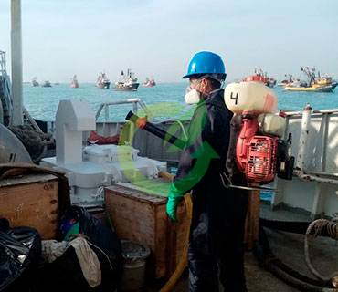 Realizamos servicios generales, saneamiento integral, desinsectación, desinfección y deratización de barcos y chatas ante la autoridad maritima nacional, contamos con el permiso DICAPI N° 041 – 010920/R..