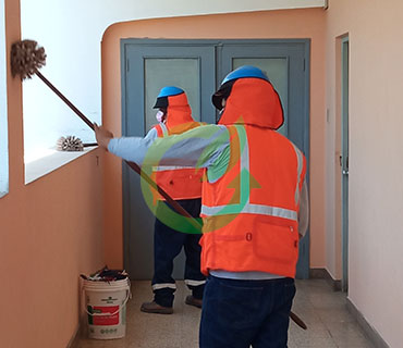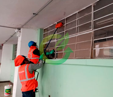 La limpieza de ambientes forma parte de las tareas imprescindibles a llevar a cabo para asegurar el buen funcionamiento y las condiciones óptimas de trabajo en una fábrica. Retiro de polvo de paredes y ventanas..